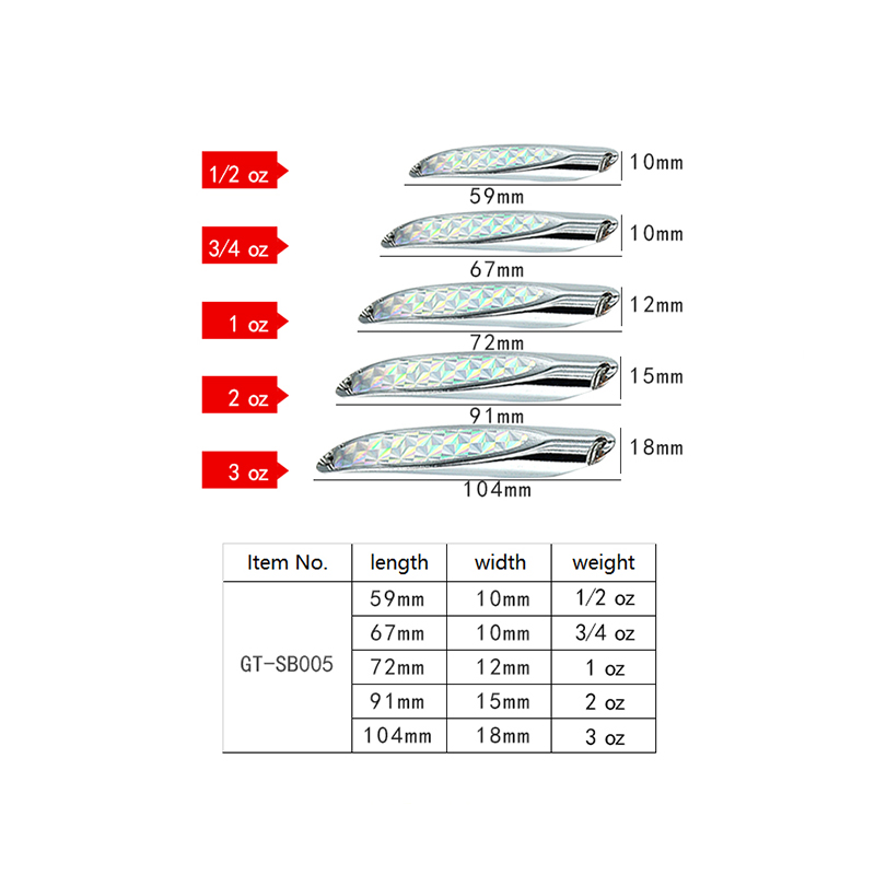 Product size: Weight :1/2、3/4、1、2、3oz Length :59、67、72、91、104