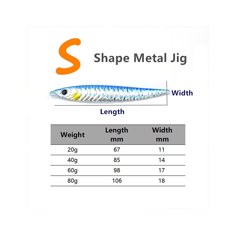 Product size: Weight(g):20、40、60、80 Length(mm):67、85、98、106
