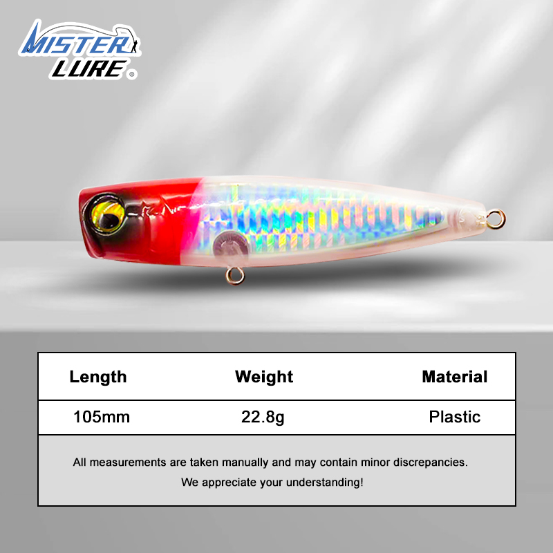 MISTER LURE 105mm 22.8g Topwater Fishing Lures Hard Plastic Popper