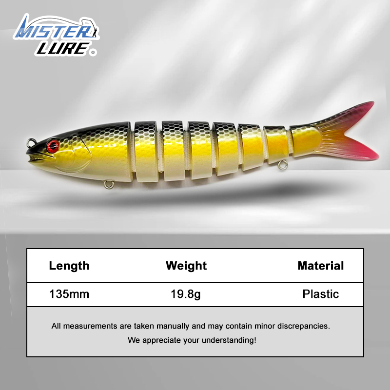 MISTER LURE 135mm 19.8g 8-Section Artificial Swimmer Bait Hard Plastic Multi-Jointed Bass Pike Fishing Lure